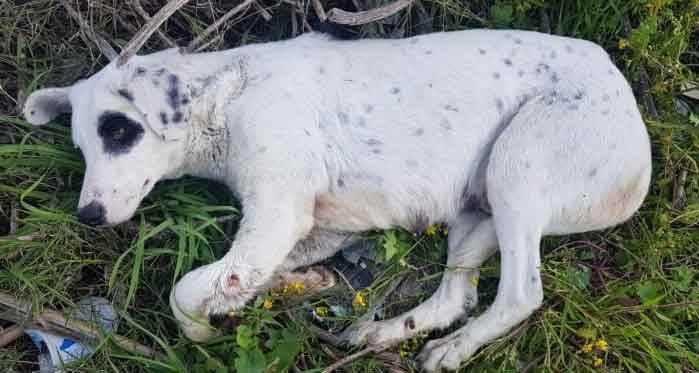 Hatay’ın Samandağ ilçesinde yavruları olduğu belirtilen bir köpek ayaklarından vurulmuş halde bulundu.