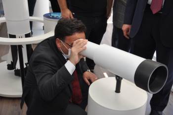 Vali Çiçek ve protokol daha sonra uzay tırını gezerek tırda bulunan Türksat uydularının portatifini yakından inceleme fırsatı buldular. Daha sonra gezegenler hakkında bilgilerin verildi tırda ayrıca dünya ve güneş sistemi de yakından incelendi.