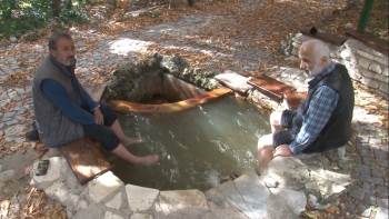 Asım Ünlü ve Abdullah Öztürk de, kaplıca suyuna ayak sallayarak, damar sertliğine şifa bulmak istediklerini dile getirdiler.