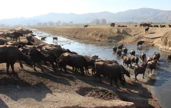 Afyonkarahisar’da mandaların sudan geçerek yayılma görüntüleri adeta Afrika bozkırlarındaki bufaloları anımsattı.