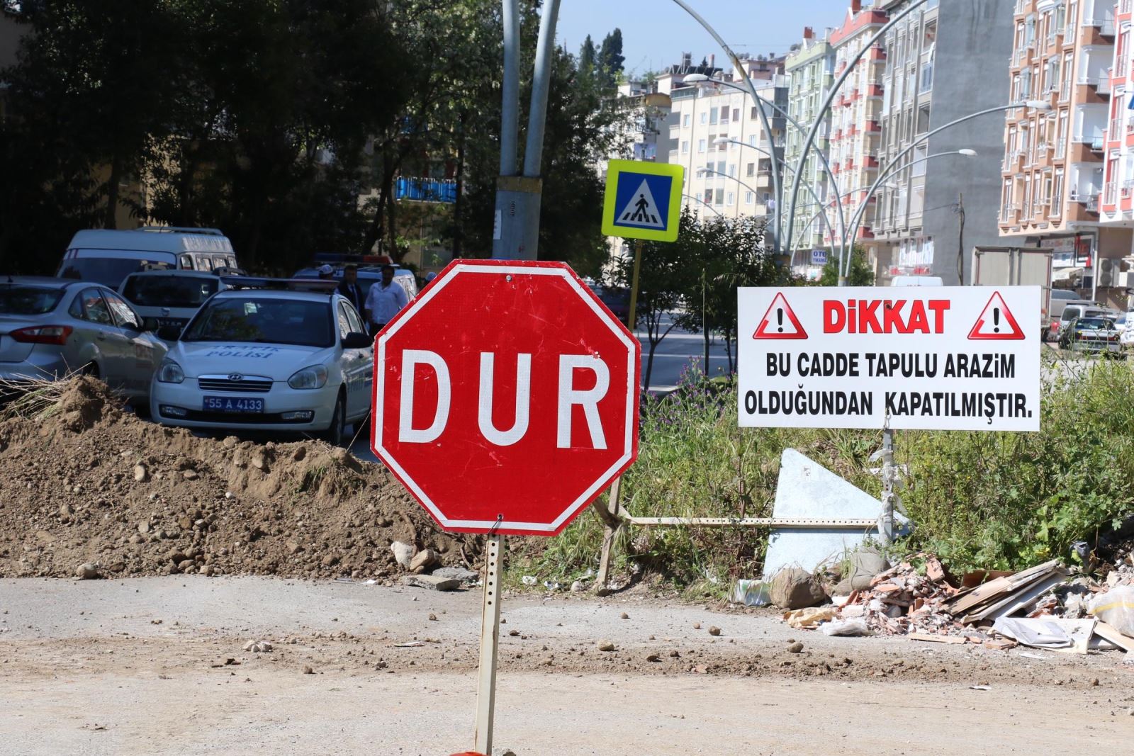 Samsun'da Gençlik Caddesi üzerindeki yolun kendi arazisi olduğunu Tapu ve Kadastro Müdürlüğü ekiplerine ölçüm yaptırarak tespit ettiren 64 yaşındaki İbrahim Akbulut, daha önce tek yön olarak kapattığı yolun diğer yönünü de kepçeyle toprak dökerek kapattı.