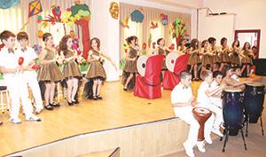 Çağfen Koleji 2.sınıf öğrencileri “Sınıf Günü” etkinliklerini gerçekleştirdi. Saygı Duruşu ve İstiklal Marşı’yla başlayan program çocuk şarkılarından oluşan “Koro ve Ritim Grubu” ile devam etti. Davul, darbuka, tumba, quero, kastanyet ve marakasları büyük bir ustalıkla kullanan Çağfen öğrencilerini, aileleri büyük bir hayranlıkla izledi. Programda şiirler okundu, modern dans gösterisi yapıldı. Halk oyunları gösterileri ise veliler tarafından dakikalarca alkışlandı. (HM)