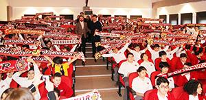 Eskişehirspor Teknik Direktörü Ertuğrul Sağlam, dün Çağfen Koleji'ndeki panel ve söyleşide öğrencilerle birlikte oldu.