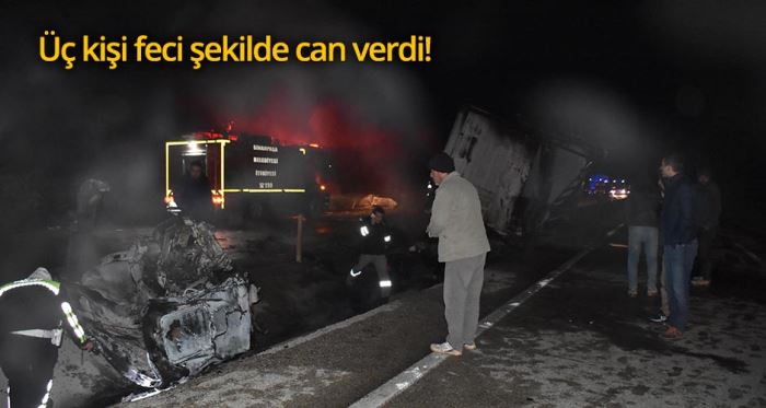 Ekiplerin yaptığı incelemede, sürücülerden 2'sinin yanarak öldüğü tespit edildi. Şarampole devrilen tırın sürücüsünün de yaşamını yitirdiği belirlendi. Kazanın ardından karayolu çift yönlü trafiğe kapatıldı. Kaza yapan araçların olay yerinden kaldırılmasının ardından kazada hayatını kaybedenlerin kimlik tespiti için başlatılan çalışma sürüyor.