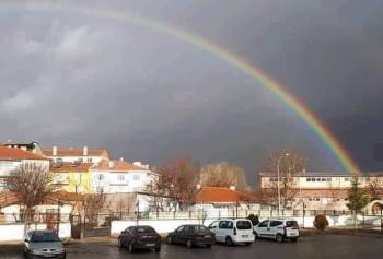 Yağan yağmur sonrası güneşin yüzünü kısa süreli göstermesiyle ilçe merkezinden çok net görülebilen kırmızı, turuncu, sarı, yeşil, mavi, lacivert ve mor renkli gökkuşağı seyri doyumsuz bir manzara sundu. Gökkuşağındaki renk cümbüşü izleyenleri mest ederken bazı vatandaşlar gökkuşağının kısa süreli görüntüsünü ölümsüzleştirmek için cep telefonlarına kaybetme telaşı içerisine girdiler.