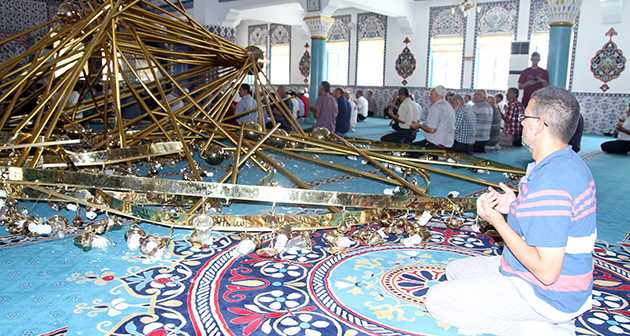 Ahmet ve Ayşe İnci Camii'nde, cemaatin üzerine avize düşmesi sonucu 10 işi yaralandı.