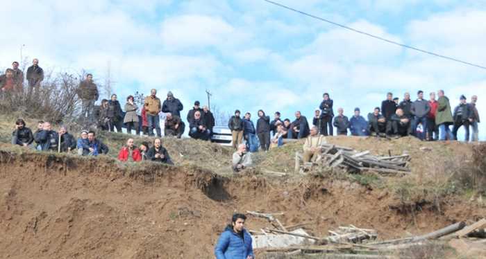 Kafkasör Yaylası ve Cerattepe Bölgesi'ndeki madencilik faaliyetleri için şirket yetkililerinin dün bölgeye geleceği duyumunu alan Artvin halkı sokaklara döküldü, Cerattepe yolu üzeri Atmaca mahallesi girişinde toplandı.