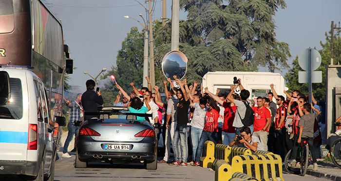 TFF 1. Lig'in 3. haftasında oynanacak maçta cezalı durumda olan Eskişehirspor taraftarı, takımlarını konvoy eşliğinde stada götürdü.