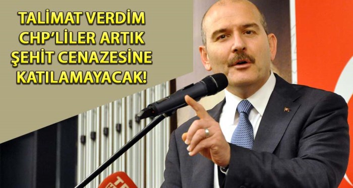 İçişleri Bakanı Süleyman Soylu, "Müsteşarımız üzerinden 'CHP il başkanlarını bundan sonra şehit cenazelerinde protokolde kabul etmeyin' talimatı gönderdim. Onları gideceği bir adres var. O adresi de onlara göstereceğiz" dedi.