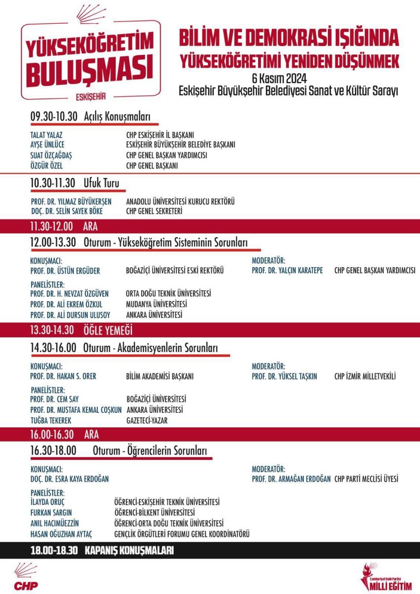 Saat 09.30’da başlayacak etkinlikte Özel’in yanı sıra Büyükşehir Belediye Başkanı Ayşe Ünlüce, önceki Büyükşehir Belediye Başkanı ve Büyükşehir Belediye Başkan Danışmanı Yılmaz Büyükerşen, CHP İl Başkanı Talat Yalaz, akademisyenler ve eğitim yazarları birer konuşma yapacak.