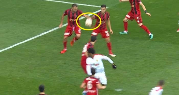 Maçın 64. Dakikasında Eskişehirspor penaltı bekledi. Yapılan ortada topun Gazişehirli futbolcunun koluna çarptığı an, yayıncı kuruluşun kamerasında tekrar tekrar ekrana getirildi. Hakem pozisyonda penaltı kararı vermek bir yana dursun oyuncumuz Dorukhan’a karara itiraz ettiği için sarı kart gösterdi.