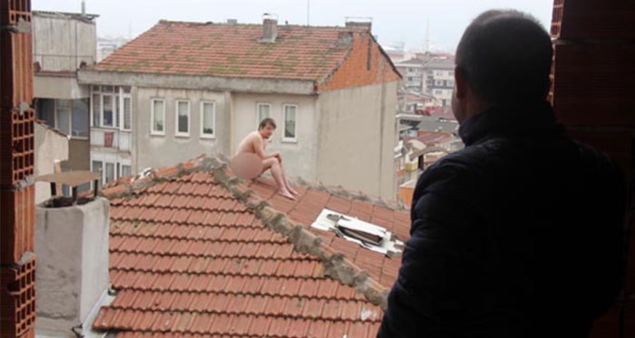 Videoyu Aç Çırılçıplak çatıya çıktı, çay ile ikna oldu!