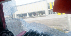 Otobüsler taşlandı