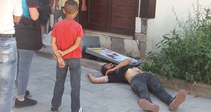 Madde krizine girip bayılan genci çocuklar endişeli gözlerle izledi
