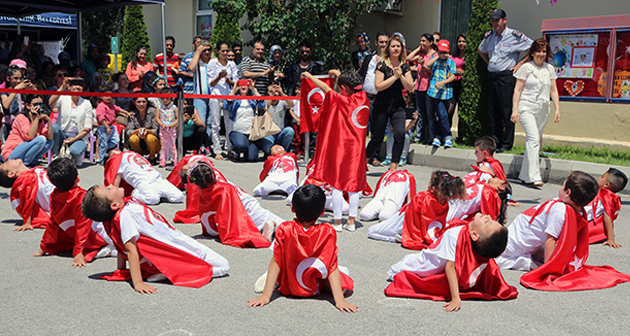 Diploma töreni öncesi hazırladıkları gösterileri sergileyen çocuklar, dans gösterileri yanı sıra şarkı ve şiirler okudu.