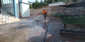 Cuma Namazı Kılınacak Cami Önleri Yıkanarak Temizlendi