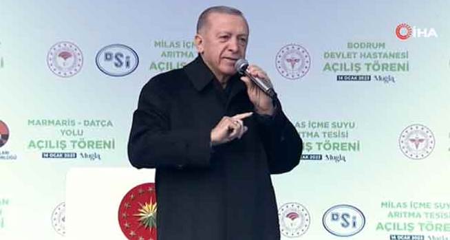 Cumhurbaşkanı Recep Tayyip Erdoğan, Muğla'da Menteşe Atatürk Bulvarı'nda Marmaris - Datça Yolu, Milas İçme Suyu Arıtma Tesisi ve Bodrum Devlet Hastanesi ile yapımı tamamlanan diğer projelerin toplu açılış töreninde açıklamalarda bulundu. Cumhurbaşkanı Recep Tayyip Erdoğan, konuşmasında, "Marmaris ziyaretlerimiz dışında epeydir Muğla'yla hasret giderememiştik. Sizleri özlemiştik. Sizlerle özlem gidermeye ve eser ve hizmetlerin açılışını gerçekleştirmek için geldik. Bugün Muğla bir başka. Eser ve hizmet siyasetimizin en güzel örneklerini Muğla'da görmek mümkündür. Demokrasi ve kalkınma hamlelerimizle ülkemizi hak ettiği seviyeye çıkarmanın ilk adımını attığımızı görüyorum. Dünyanın geçmeye hazırlandığı yeni yönetim ve ekonomi sisteminin adımını attık. Yönümüzü geleceğe dönmüş durumdayız. 2023 hedeflerimizi ilk açıkladığımızda zihinlerini faşizm kapanına hapsedenler bizi küçümsemiş hafife almışlardı. Her yatırım için yapamazsınız diyerek bizi engellemeye çalıştılar. Hiç kulak asmadık. Bizim baktığımız tek yer milletimizin ihtiyaçlarıdır. Terör örgütlerinden, darbecilere kadar istikbalimize göz dikenlerin hakkından geldik" ifadelerine yer verdi.