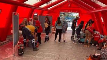 Cumhurbaşkanı Erdoğan, Kütahya’daki programının ardından Afyonkarahisar’a gelecek. Cumhurbaşkanı Erdoğan’ın sesleneceği alana gelen bazı vatandaşlar, aşırı sıcak havaya dayanamayarak baygınlık geçirdi. Bayılan vatandaşlara 112 Acil servis ve UMKE ekipleri müdahale etti.