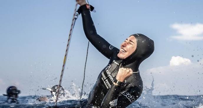 Şahika Ercümen, Cumhuriyet'in 100'üncü yılında tarihe geçti. Milli sporcu, paletsiz değişken ağırlıklı dalış kategorisinde 105 olan dünya rekorunu 106 metreye çıkardı.