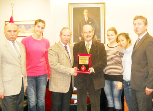 Cumhuriyet Anadolu Lisesi Müdürü Süleyman Ercan Karakaya, okul öğretmenleri ve bir gru