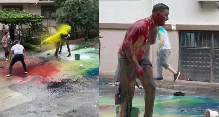 Damat; kendisini kıskaca alan arkadaşlarından, onlardan birine sarılarak kurtulmaya çalışsa da sırılsıklam olmaktan kurtulamadı. Yaşanan anlar vatandaşlar tarafından saniye saniye kayıt altına alınırken, gelenek sokağın yıkanıp temizlenmesiyle son buldu.