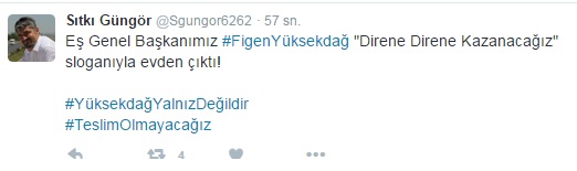İstanbul milletvekili Selahattin Demirtaş, Van Milletvekili Figen Yüksekdağ, Ankara milletvekili Sırrı Süreyya Önder,Şırnak milletvekilleri Leyla Birlik ve Ferhat Encü,Diyarbakır milletvekilleri İdris Baluken, Ziya Pir ve Nursel Aydoğan,Mardin milletvekili Gülser Yıldırım,Hakkari milletvekili Abdullah Zeydan, Mehmet Ali Aslan