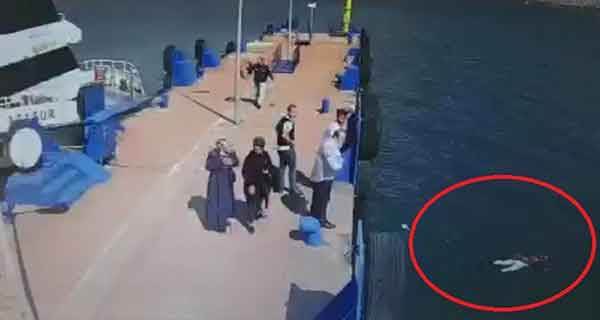 Öte yandan kadının iskeleden denize atlama anları ise iskeledeki güvenlik kameraları tarafından saniye saniye kaydedildi. Görüntülerde iskelede bir süre gezen kadın, çevreyi kontrol ettikten sonra denize atlıyor. Kadının suya atladığını gören çevredekiler ise iskelede bulunan can simidini suda hareketsiz yatan kadına ulaştırmaya çalışıyor. Bu sırada gemide görevli olan Hakan Sonay hızla gelerek suya atlayıp, vatandaşların da yardımıyla kadını denizden çıkarıyor.