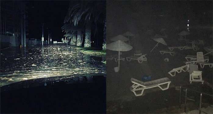 Videoyu Aç Depremden sonra deniz suyu yükseldi, otelleri su bastı