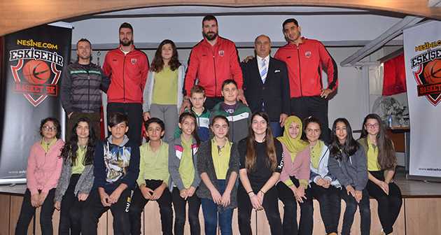 Özel İdare Ortaokulu’nun öğrencileri, Nesine.com Eskişehir Basket Genel Menajeri Ali Parlak ve Dev Adamların yıldız oyuncularında Cemal Nalga, Murat Göktaş ve Buğrahan Tuncer Plevne ile bir araya geldi