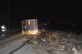 Tavşanlı’dan Tunçbilek istikametine giden İsmail Altın idaresindeki 10 VZ 302 plakalı odun yüklü kamyon direksiyon hakimiyetinin kaybedilmesi sonucu devrildi.