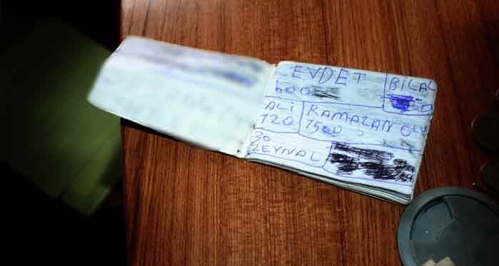 Paralara zabıta ekiplerince el konulurken dilencilere de para cezası uygulandı. Yakalanan dilencilerden Mustafa O.’nun cebinden veresiye defteri çıktı. Çıkan defterde dilenci Mustafa O.’nun borç olarak para verdiği kişilerin listesinin olması herkesi şaşırttı. 30 TL’den başlayıp bin 500 TL’ye kadar bazı kişilere borç para verdiği anlaşılan Mustafa O.’nun alacak listesinde toplam 10 bin 595 lira olduğu öğrenildi.