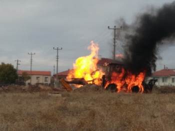 Kütahya haberi: Kütahya’nın Gediz ilçesinde, alt yapı çalışması yaparken doğalgaz borusunu patlatan iş makinesi yandı.