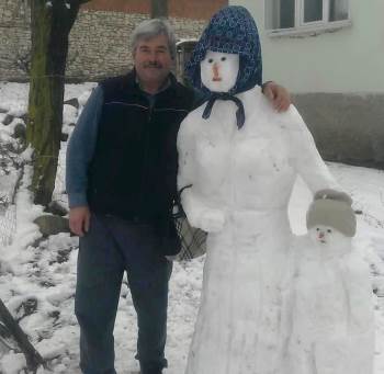 Bazı köylüler çocuklu kadın ve kardan gelin ile resim çektirmekten geri kalmadılar.