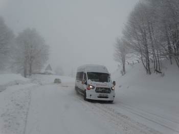 Kütahya’nın Domaniç ilçesi Kocayayla geçidinde kar yağışı, sis ve buzlanma sürücülere zor anlar yaşatıyor.