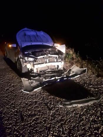 Domuza Çarpan Araç Sürücüsü Yaralandı