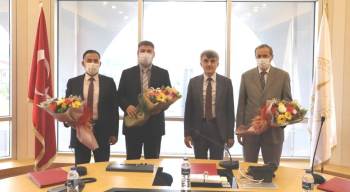 Devir teslim töreninin sonunda Rektör Uysal, Aydın, Batur ve Bektaş’a çiçek takdiminde bulunarak kendilerine ve katılımcılara teşekkür etti.