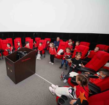 Serdivan Belediye Başkanı Osman Çelik, Dünya Uzay Haftası dolayısıyla belediyeye ait planetaryumda düzenlenen programda anaokulu öğrencileri ile bir araya geldi.
