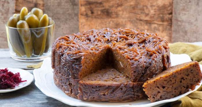 Keki andıran ve yumurta, peynir ve tuzla yapılan "Yeruşalmi Kugel" adlı bir yemek vardır.
