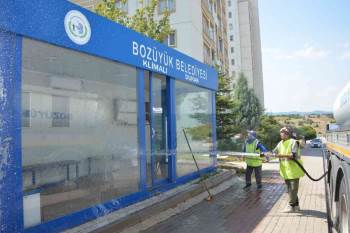 Bozüyük Belediyesi Temizlik İşleri Müdürlüğü Ekipleri Tarafından Duraklar Yıkanarak Temizleniyor.