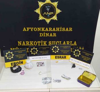 Edinilen bilgilere göre, Dinar İlçe Emniyet Müdürlüğüne bağlı Narkotik Suçlarla Mücadele Büro Amirliği ve Afyonkarahisar İl Emniyet Müdürlüğüne bağlı Narkotik Suçlarla Mücadele Şube Müdürlüğü ekipleri ortaklığında yapılan yol uygulamasında şüphe üzerine bir otomobil durduruldu. Araçta arama yapan ekipler 166 gram eroin, 5 gram metamfetamin, 8 adet sentetik ecza, 0,67 gram tütün ile karışık esrar ve içerisinde metamfetamin kırıntıları bulunan uyuşturucu madde aparatı ele geçirdi.