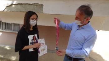 Afyonkarahisar Ahi Evran Mesleki ve Teknik Anadolu Lisesi Müdürü Abdullah Cemal Tola, Bursalıoğlu ailesini ziyaret ederek öğrencilerinin madalyalarını ve hediyelerini takdim etti.