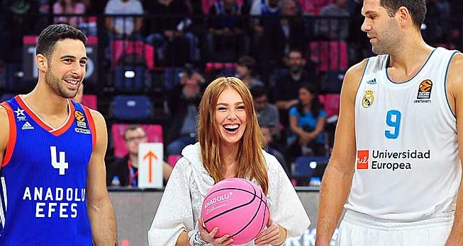 THY Euroleague karşılaşması olan Anadolu Efes - Real Madrid mücadelesinde meme kanserinde erken tanı farkındalığı oluşturmak için pembe top ile hava atışı yapıldı.