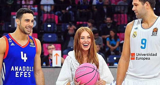THY Euroleague karşılaşması olan Anadolu Efes - Real Madrid mücadelesinde meme kanserinde erken tanı farkındalığı oluşturmak için pembe top ile hava atışı yapıldı.