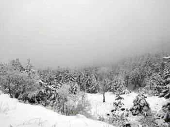 Eğrigöz Dağı’nda bulunan karaçam ağaçlarının karla kaplı görsel güzelliği bölgeye ulaşan Orman Muhafaza Memurları tarafından cep telefonuyla görüntülendi.