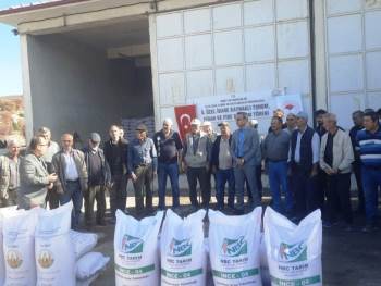 Tohumluk arpa ve buğday dağıtım törenine Kaymakam Hasan Çiçek, İlçe Tarım ve Orman Müdürü Alper Kızılçay, İlçe Özel İdare Müdürü Adem Tuncel, İl Genel Meclis Üyeleri Halil Mallı ve İsmail Elmacı, Ziraat Odası Başkanı Sami Yüksel ile birlikte tohum teslim alacak çiftçiler katıldı.