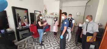 Toplum sağlığı merkezi personelinin de hazır bulunduğu denetimlerde, bayan kuaförlerin işyerleri Korona virüs (Covid 19) tedbirleri ve çalışma yönetmeliği kararları doğtultusunda kontrol edildi.