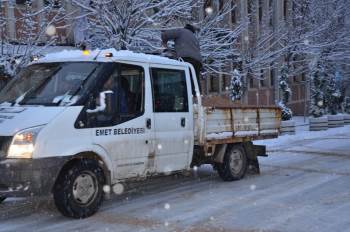Emet Belediyesi’nden yapılan açıklamada, ’’Sabahın erken saatlerinde ilçenin ana yollarında kar temizleme ve tuzlama çalışmları yapıldı. Ara sokaklarda kar temizleme ve tuzlama çalışmaları yoğun bir şekilde devam ediyor. Ayrıca Emet Karayolları ekipleri ilçenin giriş ve çıkışlarında sabaha kadar aralıksız çalışma yaptı. Çalışmalar devam ediyor’’ denildi.
