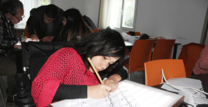 Hattat Mahmut Şahin tarafından verilen ve 9 ay öncesinde başlayan kurs Zübeyde Hanım Hastanesi Ruh Hastalıkları Bölümü’nde gerçekleştiriliyor. Kursiyerler, bedensel engelli, zihinsel engelli, görme engelli ve ortopedik engellilerden oluşuyor.