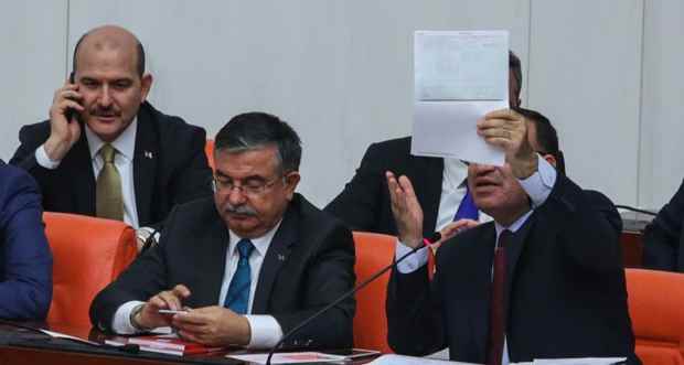 CHP Grup Başkanvekili Özgür Özel ise Bozdağ’ın gösterdiği dekontun bir kopyasını istedi ve ne zaman bu işlemin gerçekleştiğini sordu. Bozdağ, Özel’e dekontu vermedi.