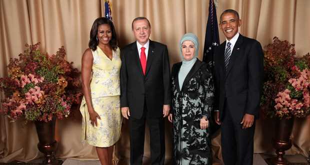 Cumhurbaşkanı Recep Tayyip Erdoğan, ABD Başkanı Barack Obama'nın BM Genel Kurulu genel görüşmeleri için gelen heyet başkanlarına verdiği resepsiyona katıldı. Cumhurbaşkanı Erdoğan, Barack Obama ve eşi Michelle Obama tarafından Lotte New York Palace Oteli'nde verilen resepsiyona katıldı.